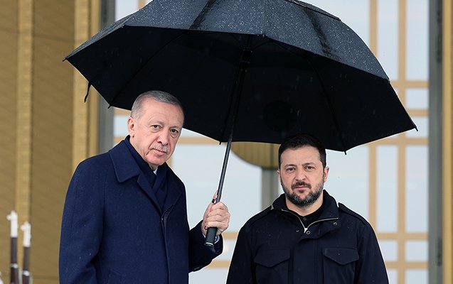 Belə ki, rəsmi qarşılanma mərasimi zamanı yağış yağdığından Ərdoğan çətirini Zelenski ilə paylaşıb və tərəflər çətirlə birgə foto çəkdirib.