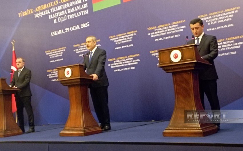 "Report"un məlumatına görə, bunu Türkiyənin xarici işlər naziri Hakan Fidan Ankarada keçirilən Azərbaycan-Türkiyə-Özbəkistan xarici işlər, iqtisadiyyat/ticarət və nəqliyyat nazirlərinin 2-ci üçtərəfli görüşündən sonra üç ölkənin xarici işlər nazirlərinin birgə mətbuat konfransında deyib.