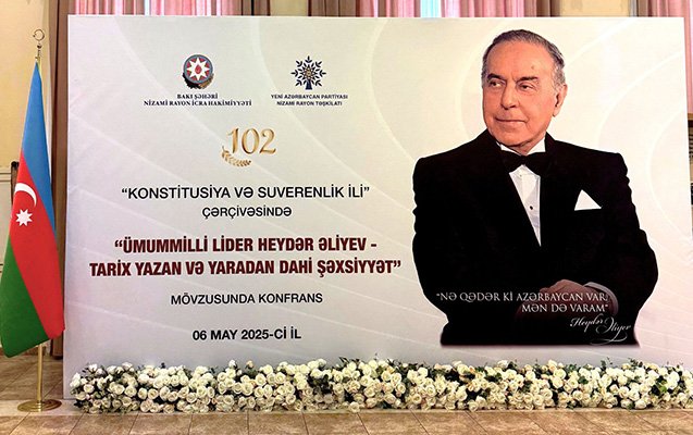Nizami Rayon İcra Hakimiyyəti və YAP Nizami rayon təşkilatının birgə təşkilatçılığı ilə “Konstitusiya və Suverenlik İli” çərçivəsində geniş rayon ictimaiyyətinin iştirakı ilə “Ümummilli Lider Heydər Əliyev – tarix yazan və yaradan Dahi Şəxsiyyət” mövzusunda konfrans keçirilib.