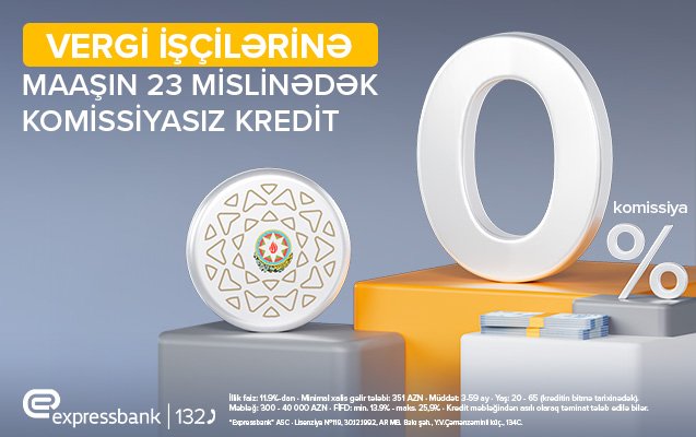Bankın “Qafqazinfo”a verdiyi məlumatda bildirilir ki, yeni kampaniya şərtlərinə əsasən,“Expressbank”da kredit üzrə illik faiz dərəcəsinə 3%-dək endirim tətbiq olunur!